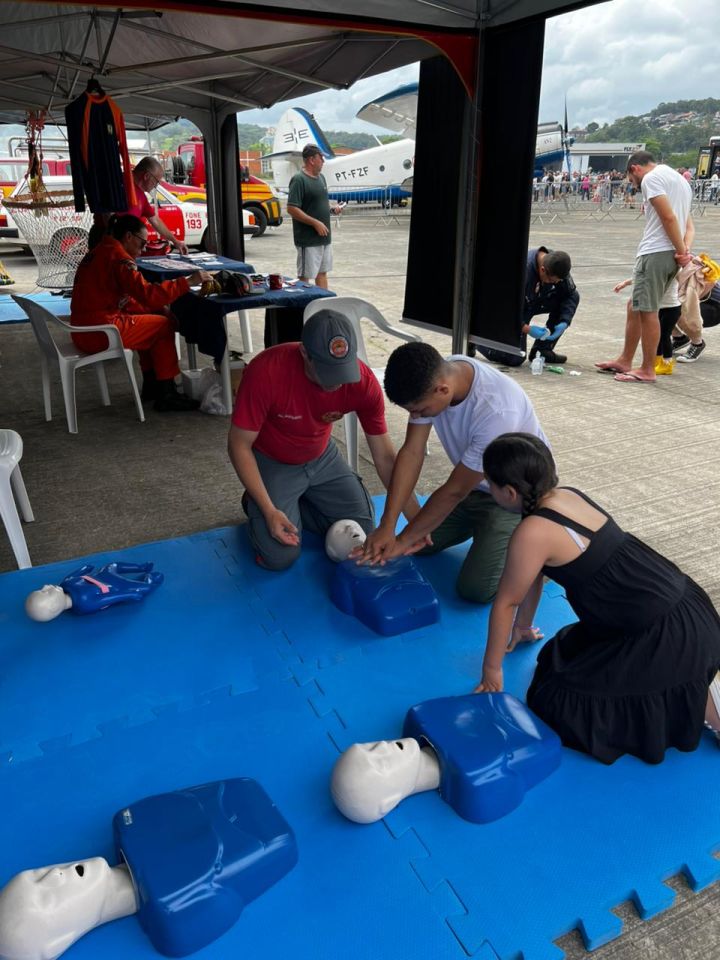 O estande do BOA ofereceu demonstrações de RCP (reanimação cardiopulmonar) com manequins, orientando os visitantes sobre como agir em casos de parada cardiorrespiratória — uma das ocorrências mais frequentes nas missões aeromédicas. Também foram apresentados os equipamentos embarcados na aeronave, que a transformam em uma verdadeira UTI aérea: ultrassom portátil, bolsas de sangue, monitor cardíaco, medicações e outros insumos hospitalares.