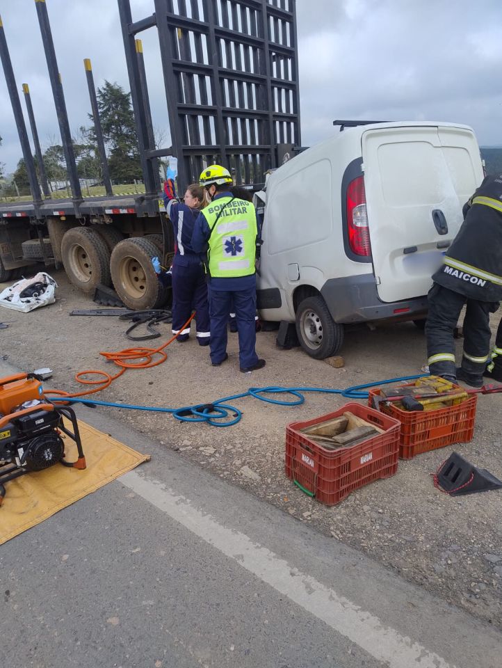 As equipes do CBMSC realizaram a estabilização do carro e do reboque, acesso ao interior da cabine e imobilização inicial do paciente, incluindo o uso de colar cervical. A equipe do SAMU, com médico intervencionista, realizou procedimentos avançados, entre eles a reposição hipovolêmica (procedimento realizado quando há diminuição do volume sanguíneo, geralmente causada por hemorragias).
