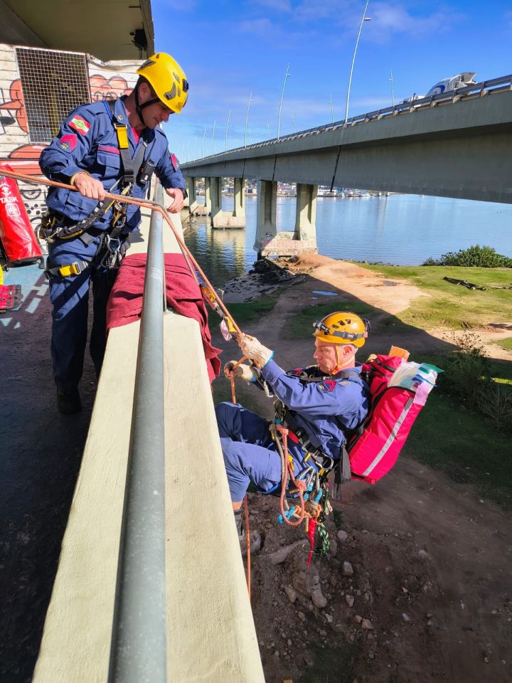 A atividade, com duração aproximada de três horas, ocorreu no lado insular da passarela da ponte Pedro Ivo Campos e simulou o atendimento a uma vítima traumatizada em local de difícil acesso. As equipes treinaram o acesso seguro à vítima, sua estabilização e posterior içamento para um ambiente protegido, empregando técnicas e equipamentos específicos de resgate vertical.
