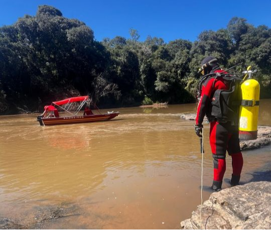 Ainda no domingo, familiares que estavam no local acionaram o CBMSC por volta das 15h44. De imediato, as equipes iniciaram as buscas utilizando embarcações e garatéias (instrumentos usados em operações de busca subaquática), percorrendo as margens e o leito do rio até o anoitecer, infelizmente sem sucesso.