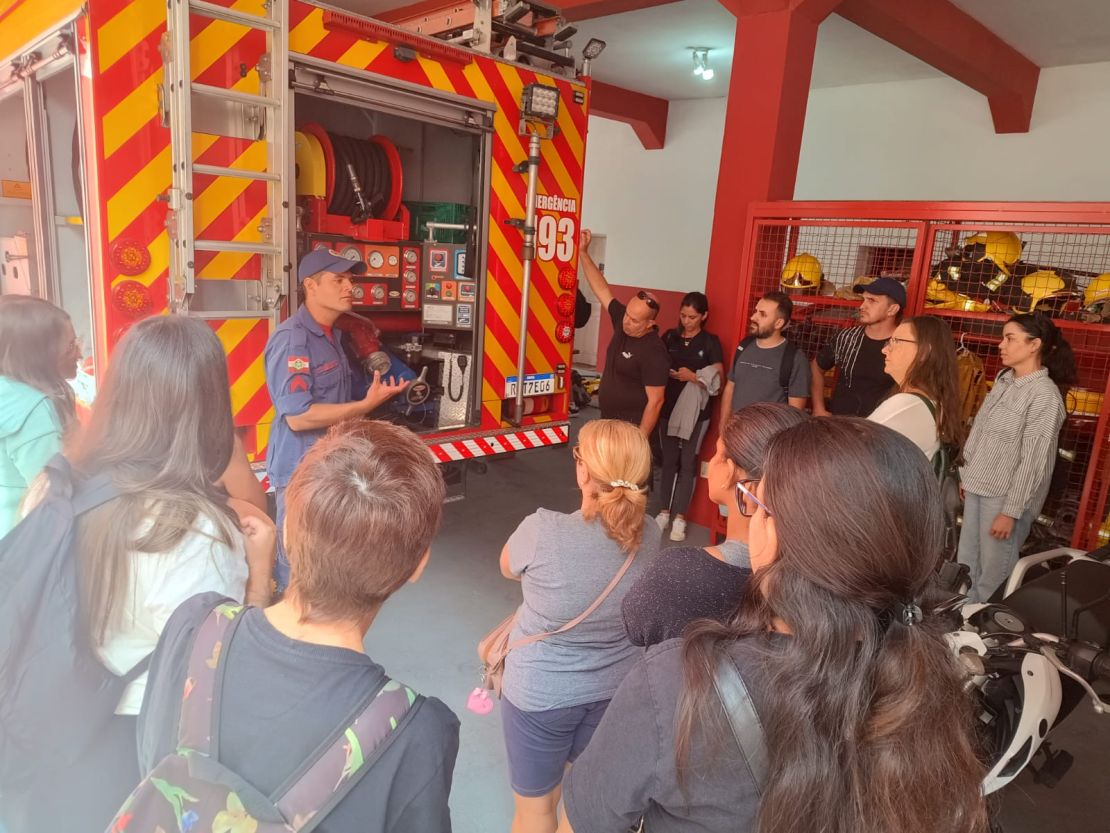 A atividade ocorreu nas dependências do quartel histórico Central, e proporcionou um momento de troca de conhecimento e aproximação com a comunidade escolar, reforçando o compromisso do CBMSC com a educação preventiva e a promoção da cultura de segurança nas instituições de ensino.
