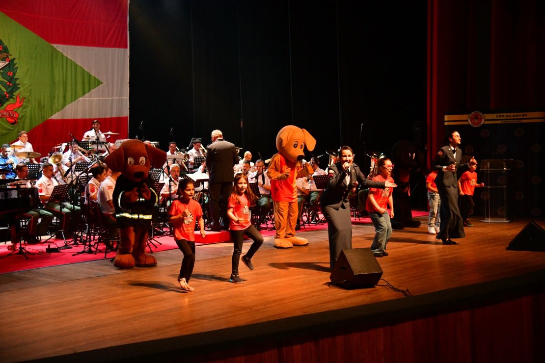 Um dos pontos altos foi a homenagem à jovem Lara, bombeira mirim de nove anos que salvou a vida da prima com técnicas aprendidas no programa. Ela subiu ao palco para cantar junto com os mascotes da corporação e será condecorada com a Medalha do Mérito Bombeiro Comunitário na solenidade oficial de aniversário do CBMSC, que acontece na próxima sexta-feira, 26.