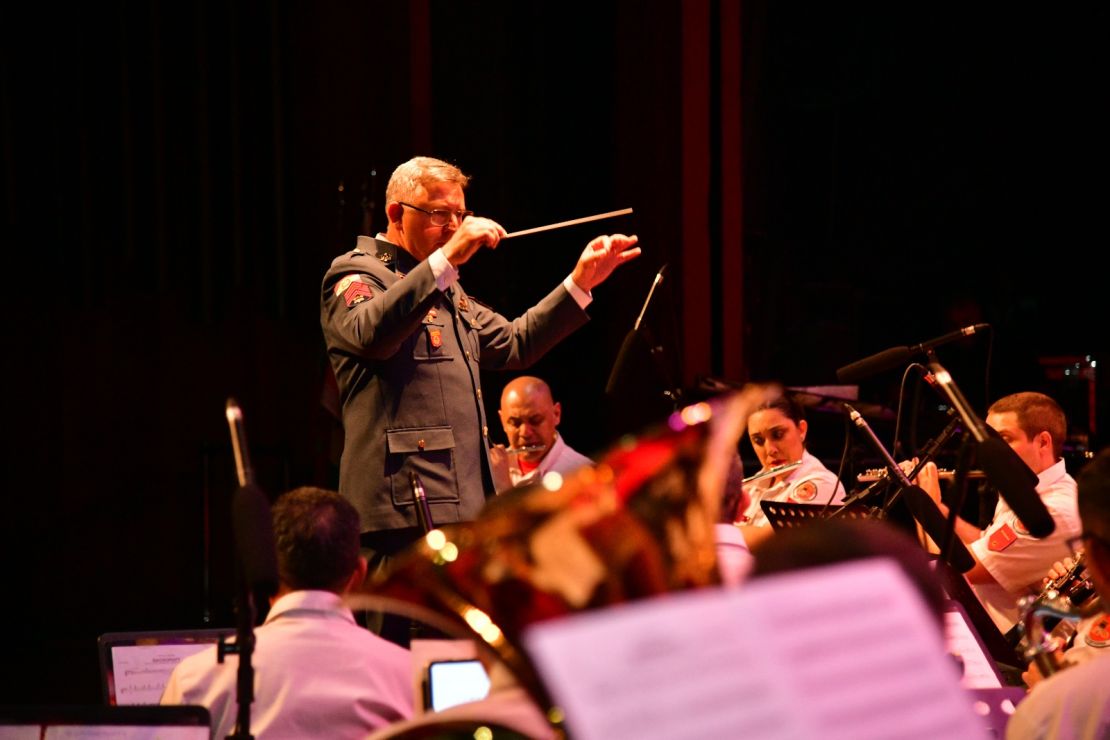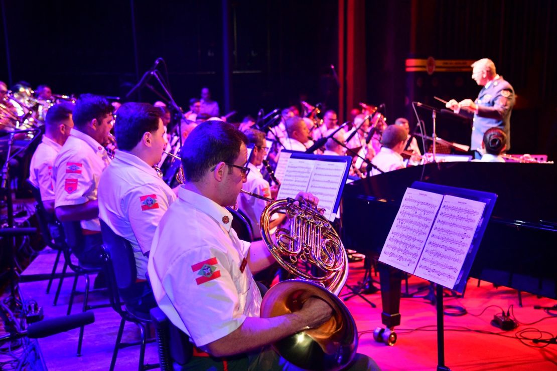 Com a presença de autoridades civis e militares, convidados e comunidade, o público pôde se emocionar com um repertório variado que incluiu clássicos da música erudita, sucessos da MPB, trilhas de cinema e canções internacionais. Composta por mais de 50 músicos, a Banda do CBMSC tem a regência do sargento Marcelo Augusto Menezes.O comandante-geral do CBMSC, coronel Fabiano de Souza, realizou a abertura do evento: "Este momento é a perfeita demonstração da união entre a farda e a sociedade catarinense, que caminham juntas há quase um século. Cada nota executada nesta noite é um tributo à coragem, ao sacrifício e ao espírito de solidariedade que marca a nossa trajetória. A música, assim como o serviço bombeiro militar, tem o poder de tocar corações, inspirar esperanças e unir pessoas. Este concerto é mais do que uma apresentação artística, é uma verdadeira homenagem àqueles que, ao longo de quase um século, construíram com dedicação e bravura a história desta corporação", concluiu o comandante.