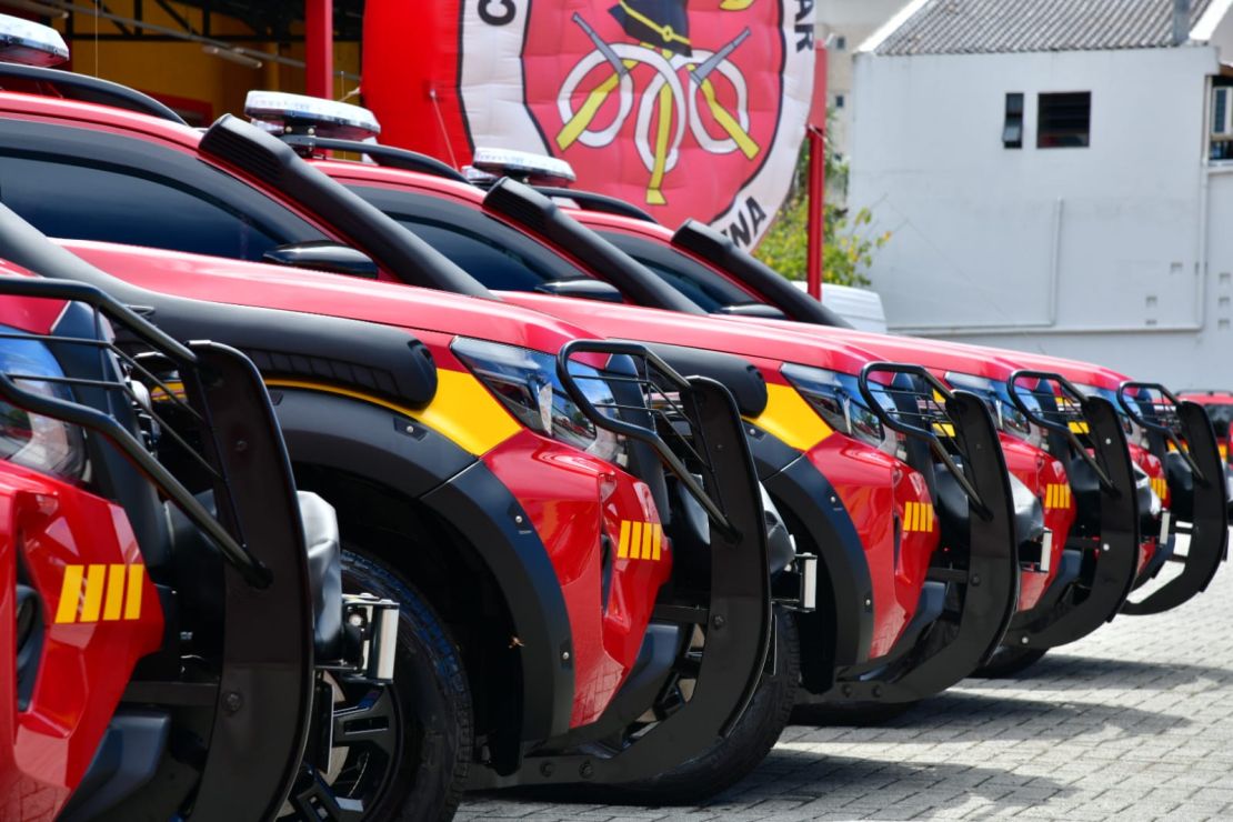 A solenidade também foi marcada pela entrega de 13 novas viaturas para reforçar a estrutura operacional da corporação. O investimento, superior a R$ 3 milhões, inclui oito caminhonetes, três ambulâncias e duas viaturas administrativas.