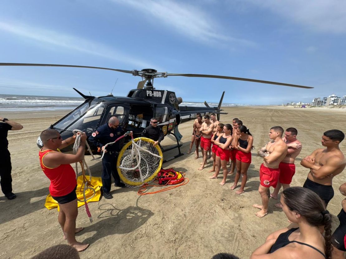 Durante a atividade, a aeronave utilizada pelo SAER foi apresentada aos participantes, que também conheceram as possibilidades de emprego do serviço aéreo em ocorrências no litoral. "Essa parceria permite que os futuros guarda-vidas compreendam como acionar a equipe e de que forma o Atendimento Pré-Hospitalar (APH) especializado, voltado para casos de afogamento, pode ser realizado à beira-mar. Além disso, os alunos GVCs foram orientados sobre como apoiar a equipe médica durante os atendimentos", ressaltou o capitão Felipe Daniel, que acompanhou o treinamento.
