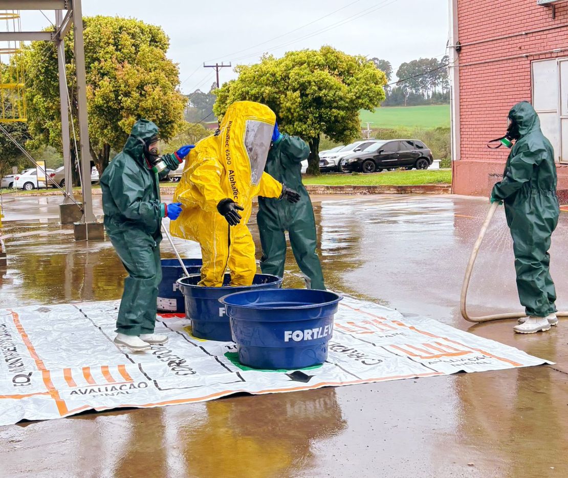A atividade contou com três etapas: uma apresentação teórica, abordando riscos, medidas de segurança e protocolos de resposta; uma visita à planta industrial, com reconhecimento de saídas de emergência e rotas de fuga; e um simulado de emergência, que envolveu cenário de vazamento de amônia com vítima, incluindo utilização de equipamentos de proteção e procedimentos de descontaminação.