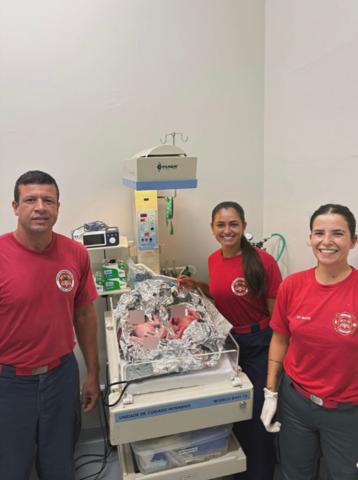 O primeiro gêmeo nasceu sob cuidados diretos dos bombeiros, que imediatamente iniciaram a avaliação rápida e o suporte neonatal. Poucos minutos depois, o segundo bebê também veio ao mundo com sucesso. Ambos os recém-nascidos apresentaram sinais vitais estáveis e permaneceram com a mãe até o encaminhamento ao hospital, onde seguiram para avaliação e acompanhamento médico.
