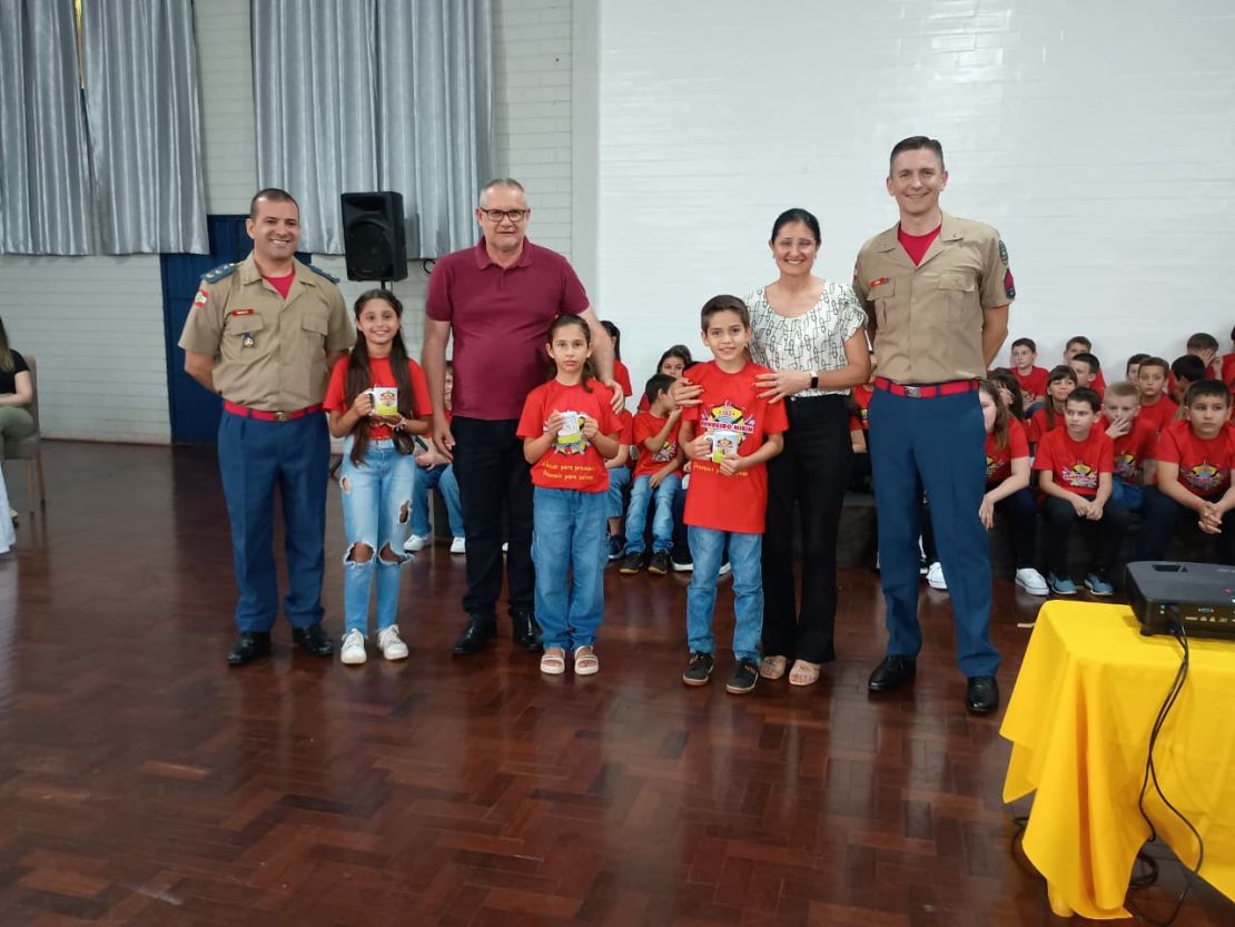 Durante a cerimônia, personalidades que contribuíram para a realização do programa receberam o certificado "Amigo do Bombeiro Mirim", entre elas o prefeito Juliano Luiz Bortolanza, a secretária de Educação Marlene Demarchi, as diretoras Sandra Bedatty e Maricleia Pfeifer, além de professoras, auxiliares e os instrutores do programa, Claudinei Dal Vitt e Liege Micheli Trescher.