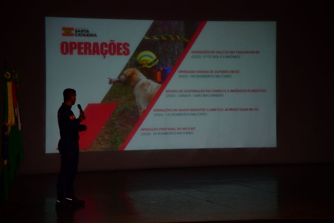 Entre os temas abordados pelo coronel Fabiano de Souza, destacam-se os investimentos superiores a R$ 270 milhões em viaturas, equipamentos e obras no CBMSC, a abertura de concurso público para militares efetivos e o processo seletivo para militares temporários.