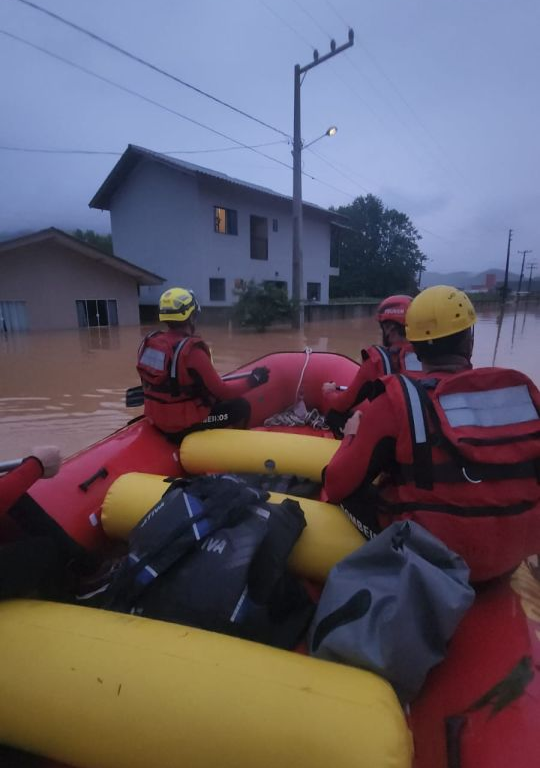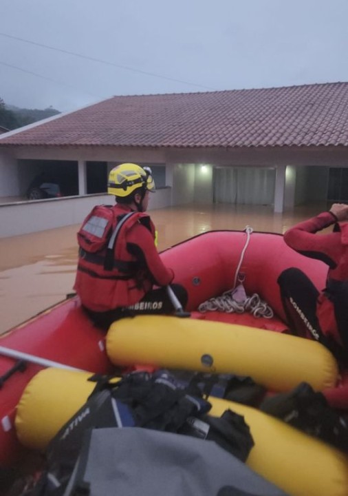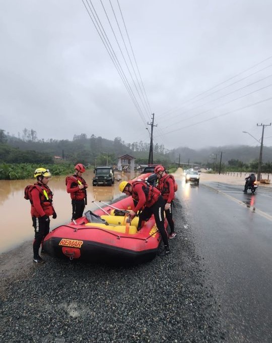 Diante do volume de ocorrências, foi mobilizado reforço operacional: a equipe da Força-Tarefa (FT) de Itajaí e mais duas equipes do 7º Batalhão de Bombeiros Militar (7ºBBM) atuaram na busca e resgate das pessoas na inundação, ampliando a capacidade de resposta. Além disso, a aeronave Arcanjo realizou voos em reconhecimento da situação e identificação de possíveis vítimas.